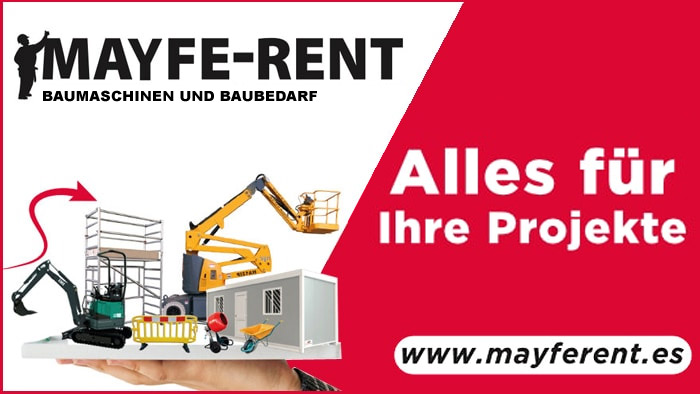 Bei Mayferent können Sie alles mieten, was Sie für Ihre Bau-, Renovierungs- und Konstruktionsarbeiten auf Mallorca benötigen.